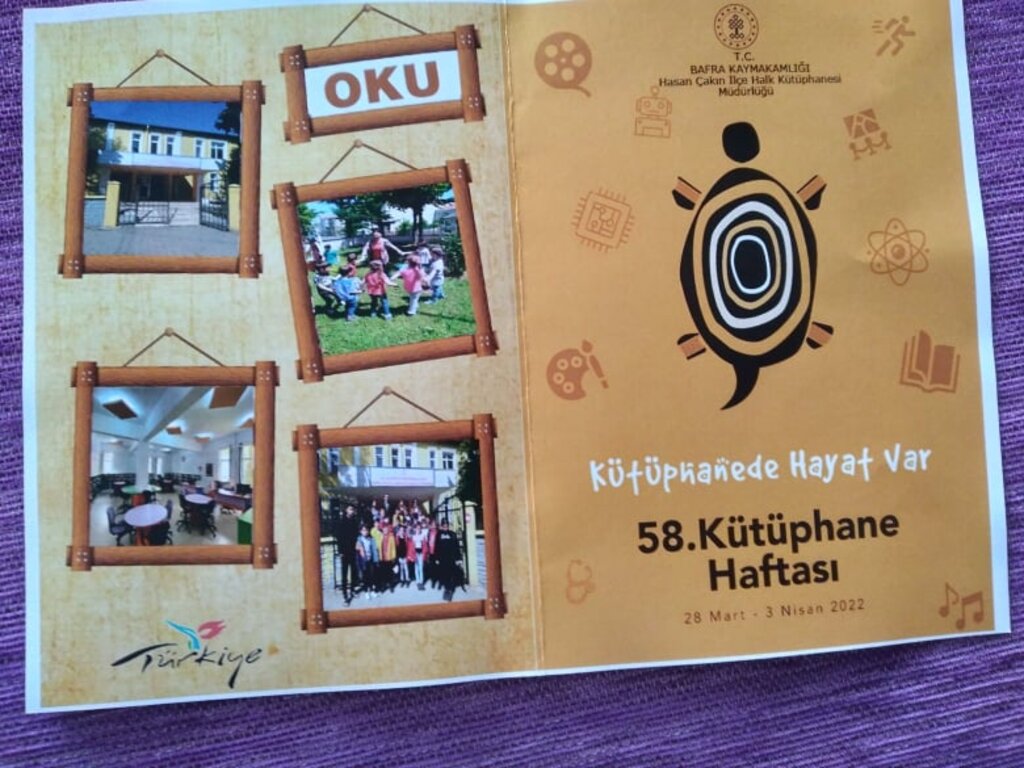 Bafra Hasan Çakın İlçe Halk Kütüphanesi, 58. Kütüphane Haftası Kutlama Programı belli oldu. Bafra Kaymakamı Cevdet Ertürkmen imzalı Kutlama Progam şöyle: Açılış ve saygı duruşu ve İstiklal Marşı Günün anlam ve önemiyle ilgili konuşmalar Masallar Küstü adlı tiyatro gösterisi Kitaplar Konuşuyor adlı skeç Hikaye Yarışması Ödül Töreni En çok kitap alıp okuyan ve kullananlara Ödül Töreni. Programı 30 Mart Çarşamba günü saat 11.00 da gerçekleştirilecek. Haber: Oktay ZERRİN- Bafra