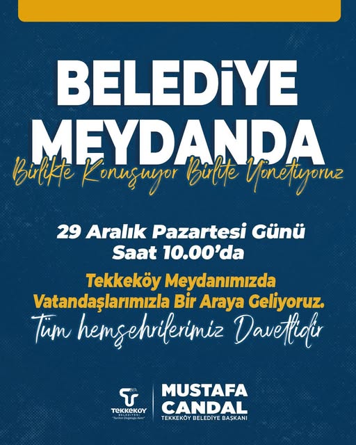 Hemşehrilerimizle doğrudan buluşmak, talep ve önerileri yerinde dinlemek için Tekkeköy Meydanı’nda bir araya geliyoruz.