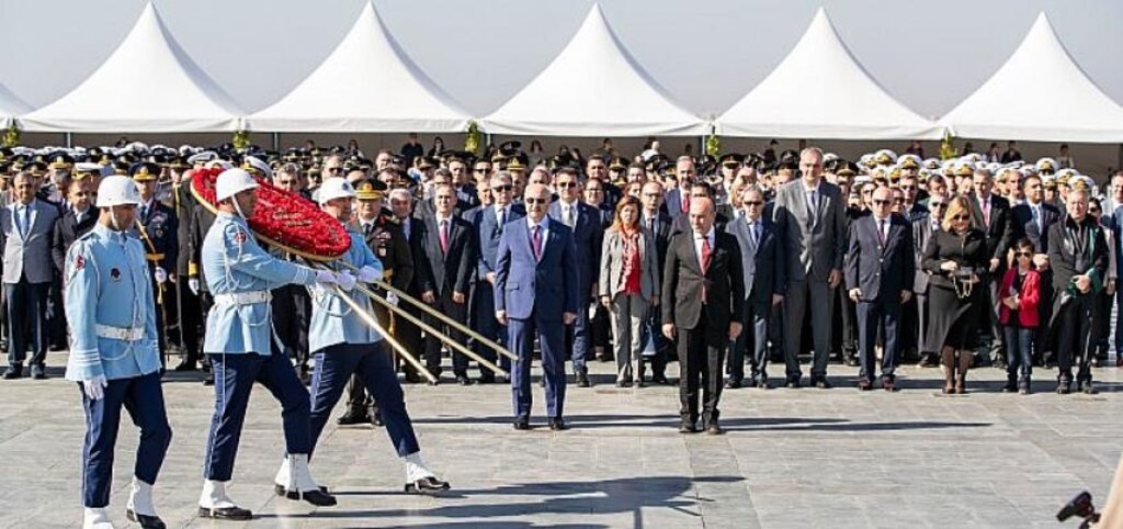 İzmir’de 29 Ekim kutlamaları kapsamında Cumhuriyet Meydanı’nda tören düzenlendi. İzmir Valisi Yavuz Selim Köşger, İzmir Büyükşehir Belediye Başkanı Tunç Soyer ve Ege Ordusu ve Garnizon Komutanı Korgeneral Kemal Yeni’nin katıldığı törende Atatürk Anıtı’na çelenk bırakıldı.Cumhuriyet’in kuruluşunun 99. yıl dönümü nedeniyle Cumhuriyet Meydanı’nda tören düzenlendi. Törene İzmir Valisi Yavuz Selim Köşger, İzmir Büyükşehir Belediye Başkanı Tunç Soyer, Ege Ordusu ve Garnizon Komutanı Korgeneral Kemal Yeni, İzmir İl Emniyet Müdürü Mehmet Şahne, İzmir Barosu Başkanı Sefa Yılmaz, milletvekilleri, üniversite rektörleri ile sivil toplum örgütlerinin temsilcileri katıldı. Tören, Atatürk Anıtı’na çelenk konulmasının ardından saygı duruşu ve İstiklal Marşı’nın okunmasıyla son buldu.Yarınki Cumhuriyet Bayramı kutlamalarının ilk adresi 10.30’da Cumhuriyet Meydanı olacak.Kaynak: (BYZHA) - Beyaz Haber Ajansı