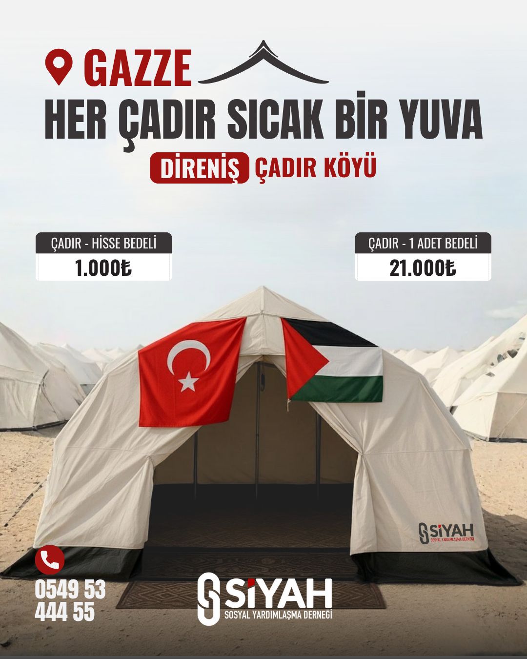 Gazzeli Kardeşlerimiz İçin “Direniş Çadır Köyü” Başlatıyoruz????????Gazze’de yaşanan zor günlerde, kardeşlerimizin yanında olmaya devam ediyoruz. Siyah Hareketi olarak “Her Çadır Sıcak Bir Yuva” anlayışıyla Direniş Çadır Köyü kampanyamızı hayata geçiriyoruz.Bu proje ile barınma ihtiyacı olan ailelere sıcak ve güvenli bir yaşam alanı sunmayı amaçlıyoruz.Katkı Seçenekleri: