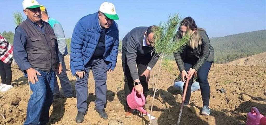 İzmir’in Kınık İlçesinde 11 Kasım Milli Ağaçlandırma Günü etkinlikleri kapsamında fidanlar toprakla buluşturuldu