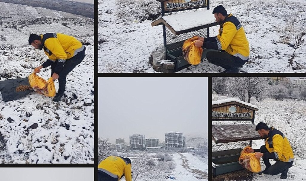 Nevşehir’de kar yağışı ve soğuk hava nedeniyle yiyecek bulmakta zorlanan sokak hayvanlarına Nevşehir Belediyesi sahip çıkmaya devam ediyor