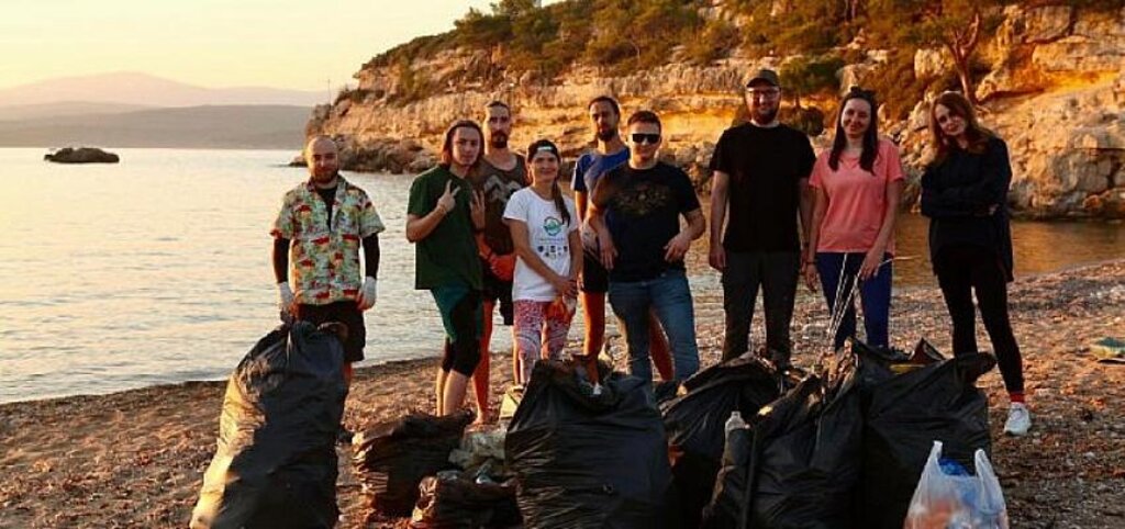 Dünyanın bir ucu Rusya'dan gelen çevreci grup Seferihisar’da çevre temizliği yaptı