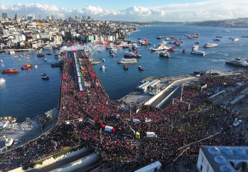 Türkiye’nin dört bir yanından gelen yüz binlerce kişi, Filistin’de yaşananlara dikkat çekmek ve Gazze halkına destek vermek amacıyla yılın ilk gününde İstanbul’da buluştu. TÜGVA öncülüğünde düzenlenen yürüyüşte Galata Köprüsü doldu, güçlü mesajlar verildi.
