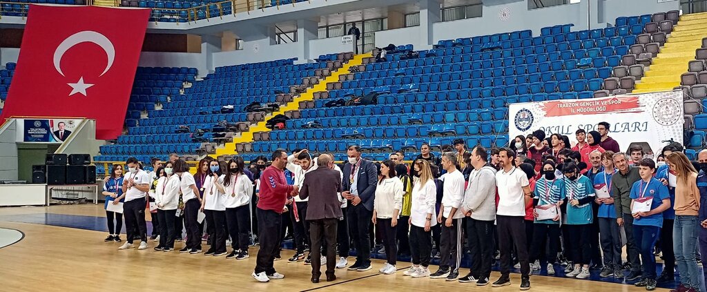 Yarı final Trabzon programında öğrencilere eşlik eden Okul Müdürümüz Ahmet DEBEROĞLU, Yarışmada üstün başarı sağlayan öğrencilerimizi ve Beden Eğitimi Öğretmenimiz Alaaddin ÖVÜÇ hocamızı tebrik etti.